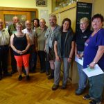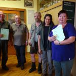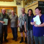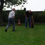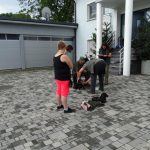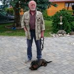 Nach einer Nacht mit einem schwerem Gewitter und Hagel trafen wir uns um 08.30 Uhr im Hof der Familie Haimerl in Wenzenbach zur Prüfung. Von 10 gemeldeten Teilnehmern waren 8 anwesend, ein Dackel und eine Führerin waren krank entschuldigt. Auch unsere Trainer Mike und Karin Rösch kamen dazu. Etwas später trafen die Richterin Frau Hawelka und der Prüfungsleiter Herr Sattler ein und stellten sich vor. Es folgten die Einweisung und die Verlosung der Startnummern und dann wünschten uns alle viel Glück. Im großen Garten der Familie Haimerl (in dem wir auch während der Ausbildung üben durften) begann die Prüfung mit Teil BHP 1: Gehorsam und Sozialverträglichkeit. Während des Teils: Warten vor dem Geschäft verschlechterte sich das Wetter, es donnerte und dann begann der Regen. Erst verhalten und etwas später goss es wie aus Kübeln. Die Dackelprüflinge und deren Führer widerstanden tapfer dem Wetter bis zum Ende dieses Prüfungsteiles. Beim Teil BHP 2: Führersuche und Ablegen waren sich alle Teilnehmer, die Frau Richterin, und der Prüfungsleiter einig, dass sich kein Hund bei diesem Regen auf eine Wiese ablegen lässt um dann 5 Minuten zu warten. Freundlicherweise stellte Herr Haimerl dann seine Reitscheune zur Verfügung, in der wenigstens die Prüflinge im Trockenen liegen konnten. Zur Führersuche ging es dann in den Wald, da spürte man den Regen nicht mehr so sehr. Durch das nasse Wetter waren die Spuren gut zu verfolgen, alle Dackel fanden ihre Besitzer. Zum Teil BHP 3: Wasserfreude waren nur 3 Dackel gemeldet. Diese Prüfung absolvierten alle Dackel mit Bravour, noch nasser als sie schon waren konnten sie auch nicht mehr werden. Dann ging es für die Teilnehmer in die Gaststätte, wo nach den Rechen- und Schreibarbeiten die Preisverleihung begann. Die Prüferin bedankte sich bei den Teilnehmern und hob hervor, dass es ihr eine Freude war zu sehen, wie liebevoll die Führer ihre Dackel während der Prüfung geführt haben. Dann ging es zur Preisverleihung. Alle Dackel hatten bestanden. Jeder Platz war besetzt. Und wir hatten den 1. Preis und waren dazu noch Tagessieger. Leider haben alle Dackel die Preisverleihung im Auto verschlafen, so dass sich nur die Führer gegenseitig beglückwünschen konnten. Einen ganz herzlichen Dank an die Richterin Frau Hawelka, den Prüfungsleiter Herrn Sattler, unseren Trainern und ganz besonders der Familie Haimerl die uns Haus, Hof, Scheune und Tümpel zur Verfügung stellten.