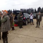 Die offensichtliche Aufregung mit lautstarkem Gebell der Dackel mit ihren Führern legte sich nach der erfolgreich abgelegten Schußfestigkeitsprüfung. Anschließend ging es bei bewölktem Himmel zur Spurlautprüfung über weitläufige Felder und Wiesen.