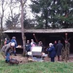Bereits am späten Vormittag begannen die Vorbereitungen mit Aufstellen von Tischen und Bänken, Auflegen von Tischdecken, Aufstellen von Gasgrill und Einheizen des Kaminofens.
