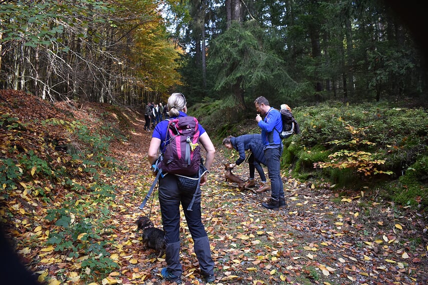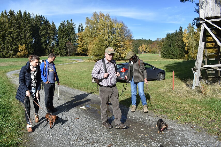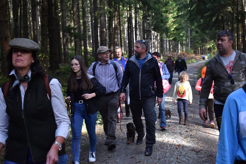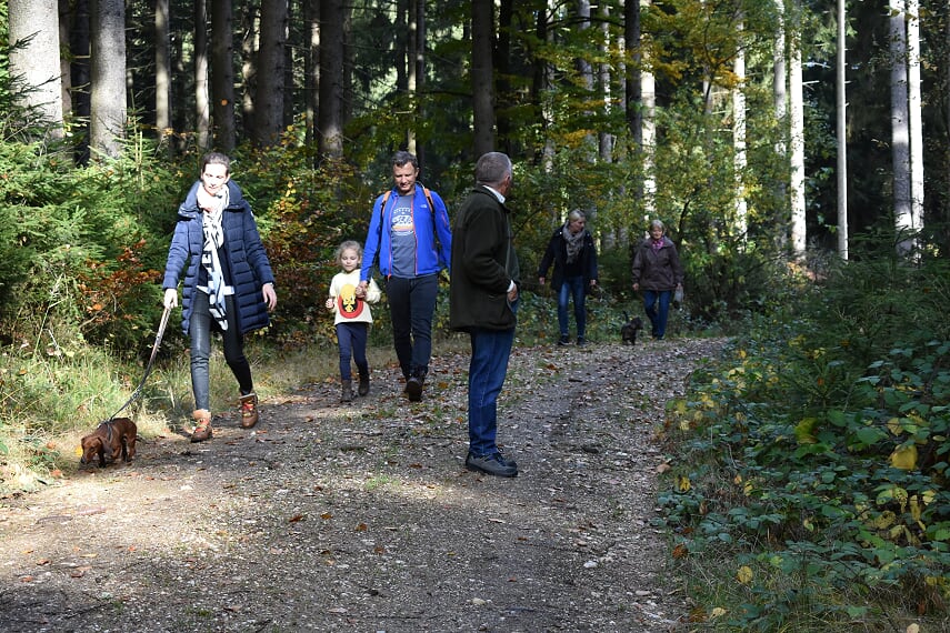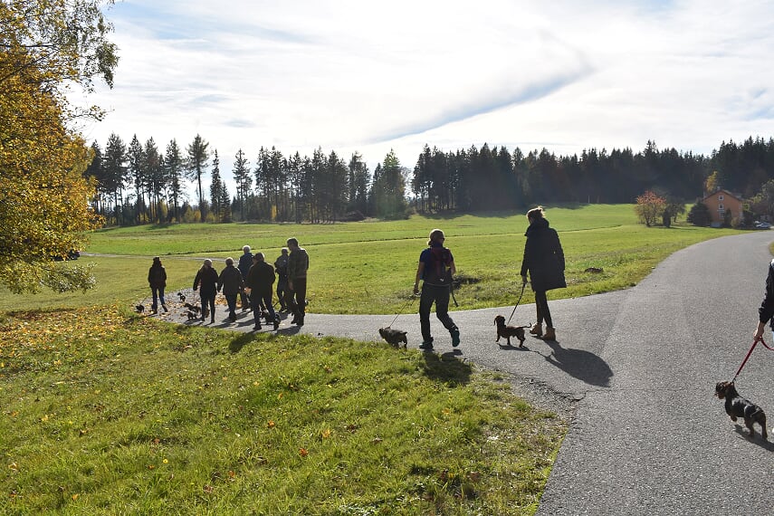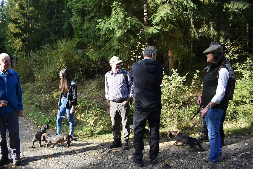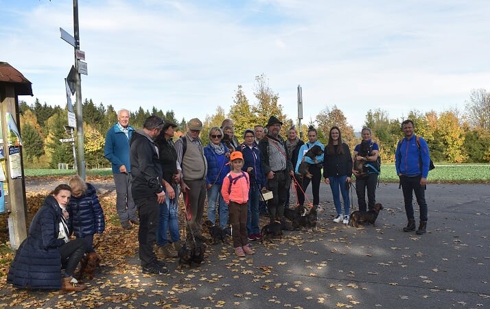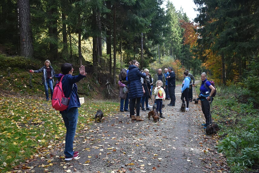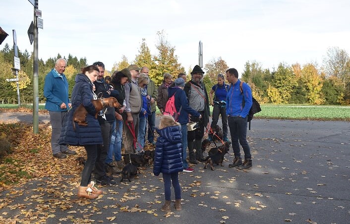 Jung und alt und natürlich allerlei Dackel machten sich bei immer noch herrlichem Wanderwetter auf den Weg durch den Park.